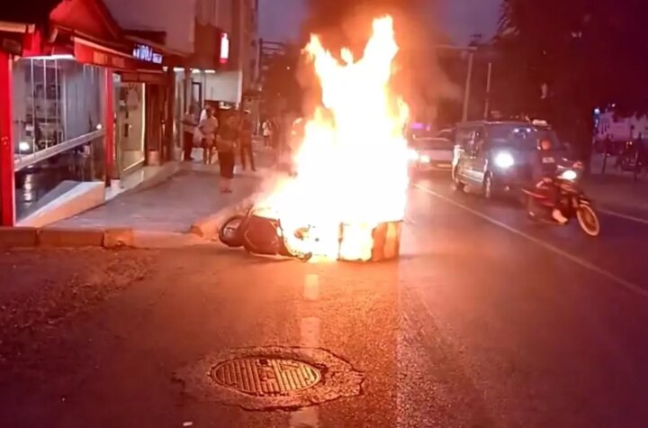 Samsun'da seyir halindeyken alev alan motosikletten şoför kaçtı. Yangını gören vatandaşlar, yangın söndürme tüpü...