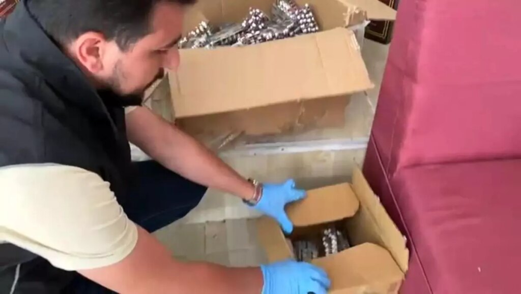 Samsun’da narkotik polisi tarafından bir iş yeri ve meskende yapılan aramada, koliler içerisinde 7 bin 500 adet sentetik ecza uyuşturucu hap ele geçirildi.